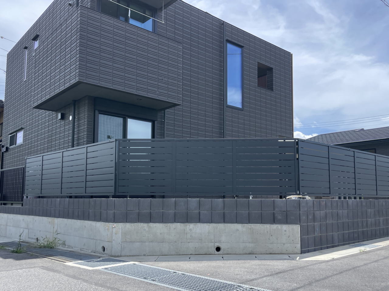 分譲地の入口の為、目隠しフェンスを設置しプライベート空間を作っています。